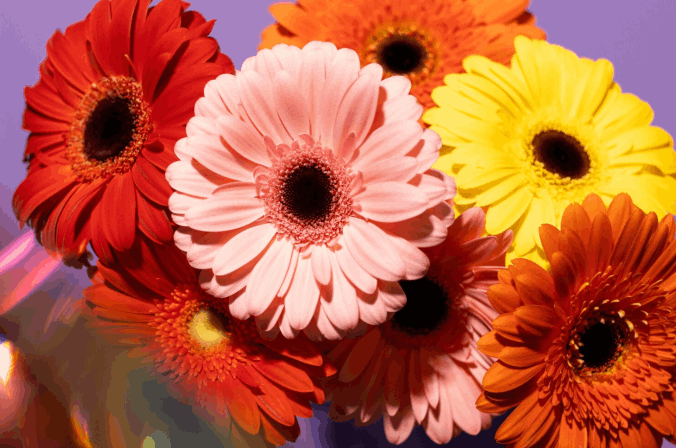 Vibrant gerbera daisies arranged to bring joy and positivity to any setting. Bright and cheerful, suitable for uplifting occasions.